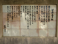 速玉大社境内に、佐藤春夫に関する碑が4基ある。「望郷五月歌」詩碑は昭和34年の建立。自筆の詩の冒頭19行を、縦74センチ、横124.5センチの陶板に焼きだしたもので、築地風の壁面にはめこまれている。なかの一節「空青し山青し海青し」は、新宮のキャッチフレーズになっている。同じ年、参道左手奥にある茶室が完成、「烏集庵(うしゅうあん)」と春夫が命名、入口に高さ78センチの自然石に彫られた自筆の碑がある。なお、茶室は現在使われていない。大社の入口、大鳥居の傍には「秋晴れよ丹鶴城址児に見せむ」の自筆の句碑。高さ261センチの舟形の自然石、昭和62年の建立。天然記念物の梛(なぎ)の大木の前の芝生内に、「速玉の竹柏(なぎ)や芝生や時雨(しぐれ)けり」の句碑、平成12年の建立。