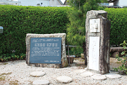 手前の小公園にある碑と解説版。新宮市に「「大逆事件」の犠牲者を顕彰する会」が生まれたのは、2001年8月。同年9月、新宮市議会は熊野地方の犠牲者6人の名誉回復宣言を満場一致で可決する。2003年7月「志を継ぐ」の碑が完成、除幕。西村伊作の子息西村八知製作、題字。当初は、西村伊作記念館内に設置されたが、故あって、小公園に移転。顕彰する会では、「90年を経て」(2001年10月)、「92年を経て 志を継ぐ」(2003年9月)の冊子を刊行している。2010年6月には、「「大逆事件」100年フォーラムIN新宮 闇(やみ)を翔(かけ)る希望」が開かれた。