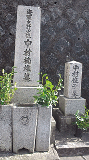 イオン駐車場横の墓地入口近くにある。「つぶら瞳」と呼んだ佐藤春夫の初恋の人、大前俊子(1891-1922)は、春夫も見知った先輩の中村楠雄(なかむら・くすお・1890-1919)と結婚。楠雄は海軍軍人となり、軍艦「最上(もがみ)」の主計長などになっているが、大正8年シベリア出兵で赴任、翌年3月ニコラエフスク(尼港)事件の犠牲になっている。その後俊子も夭折(ようせつ)、たまたま布教に来た金森通倫の祈りも受けながら、クリスチャンとして32歳の生涯を閉じている。春夫は「望郷曲」という詩で「ミニヨンにまがひしひとは / 早く世にあらずなりぬる。」と詠っている。