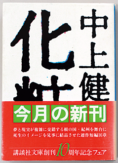 1978(昭和53)年に刊行された中上健次の短編集「化粧」のなかの一編に「浮島」がある(昭和50年8月「青春と読書」初出)。物語の導入部に「浮島の森と呼ばれる沼は、その新宮の四つの神社の真中にある。浮島の森から、目と鼻の先に、いつのころからか、遊廓がある。浮島の森には、大蛇に魅入(みい)られたおいのが、浮島の森の沼の底にひきずり込まれる伝説があるが、それに材を取った秋成の『雨月物語』蛇性の婬にあらわれたのは、蛇が女である。しかし元々は蛇は男である。ひき入られるのは、おいのだった。『おいのみたけりゃ、藺之戸(いのど)においで』と、伝説に歌がついているが、『悲しくばたずね来てみよ和泉なるー』とよく似た文句で、哀れである。その歌を、浮島の遊廓の女郎が、我が身のこととしてうたった・・・」とある。この短編は、野口冨士男の「なぎの葉考」へ呼応し、「なぎの葉考」は、最近の辻原登(つじはら・のぼる)の短編「天気」に呼応してゆく。