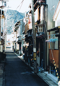 中上健次が「芥川賞」を受賞した「岬」では、「いつのまにか、薄暮の新地にやって来ていた。川向うにあるパルプ工場のにおいがした。川から離れたこの新地に、そのにおいがすると、今日の夜にも雨になる。この土地の天気は、変りやすい。雨は禍々しかった。ろくな事はなかった。彼は、『弥生』の前に立った。」と描かれている。かっての新宮駅裏の呑(の)み屋街で「有楽町(ゆうらくちょう)」と言われていた地域。他の中上作品では、小料理屋の「モン」の店もあり、「紀伊物語」では「新地から路地は駅からの道を一本はさんですぐ」と位置づけられている。「路地」の中と外の情報が交差する場所として中上作品の重要トポス。呑み屋街がほとんど消滅した後も「一寸亭」の看板は、いまの碁会所の近くに長く残されていた。写真の小路左側に一寸亭はあった。